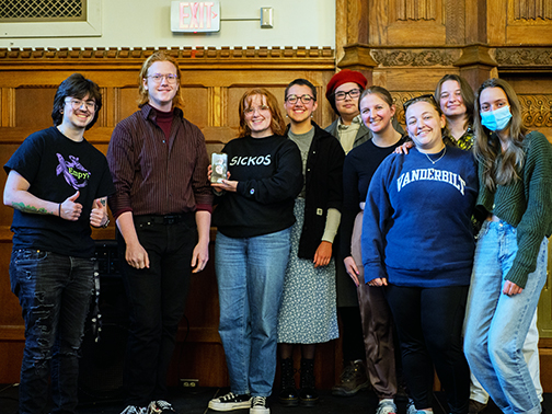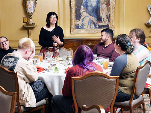 Rounding out the academic year, we honored students and selected staff for their engagement and commitment to the Collins LLC at our Awards Night on April 24th. Winners received Collins swag and cheered for their peers as their names were read aloud by Director Lara Kriegel, Associate Director Yara Clüver, Assistant Director Leigh Suggs, Student Services Coordinator Heather Holmes, outgoing President Kyle Kristoff, and Vice President of Board of Programmers Britta Hess. Our Senior Dinner was held the previous evening in the IMU Federal Room with mocktails and appetizers before a sit-down dinner. Seniors continued the tradition of sharing their favorite memories at Collins and receiving their senior blankets. The stories ranged from sweet and endearing to mischievous and funny. We will miss our seniors and hope to see them at future Collins reunions.
